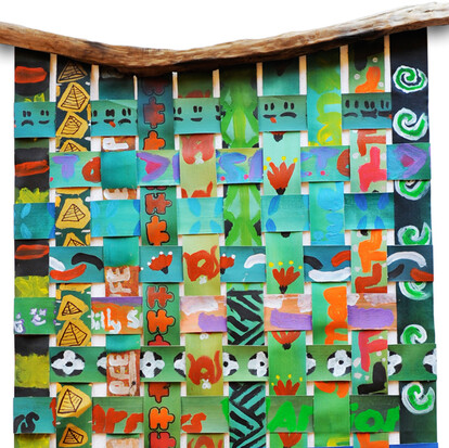 The concept of weaving evokes unity, with all of the children's diverse, vibrant strips of canvas coming together into an indivisible, complete artwork.