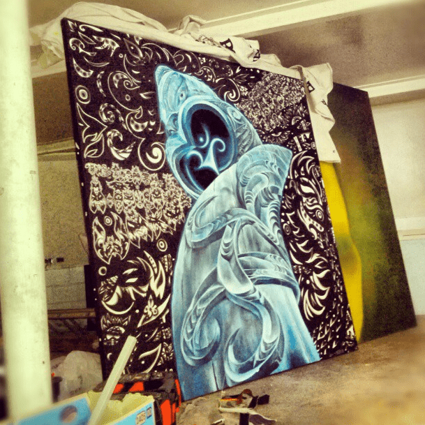 Been moving my art studio and 2 paintings are too big to fit in the new door! They'll have to stay in the garage for now. This is Te Pou Tuatahi and a 2x3m work-in-progress.