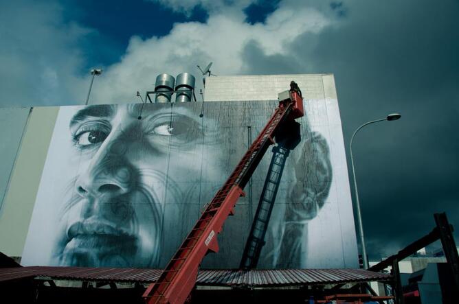 Been a year since wheat-pasting a massive 9 x 15 metre print of my painting of Tiki Taane with full-face moko (traditional Maori tattoo) on a wall in Auckland's high-end retail district of Newmarket.