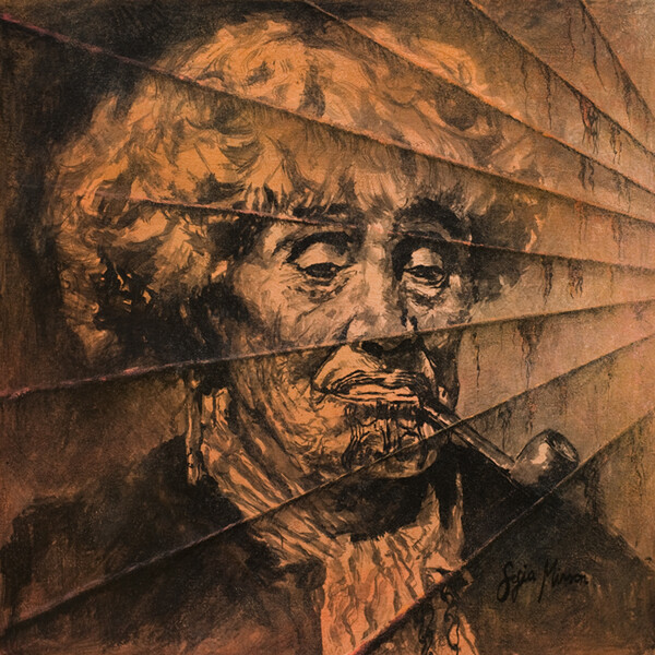 This work is an adaptation of C.F. Goldie's 1902 portrait of Ena Te Papatahi. Sofia's idea behind the radial lines is that they are threads reaching into the past to our ancestors from countless generations until the instant of creation and far into the future. They symbolize the traditional M?ori notion of 'The Rope of Mankind' or 'Te Here Tangata'. In Minson's opinion C.F. Goldie's recordings of Maori through portraiture in the 19th and 20th century has helped strengthened our generation's memories and connections to the ancestors of Aotearoa and has thereby strengthened the rope or thread of mankind.