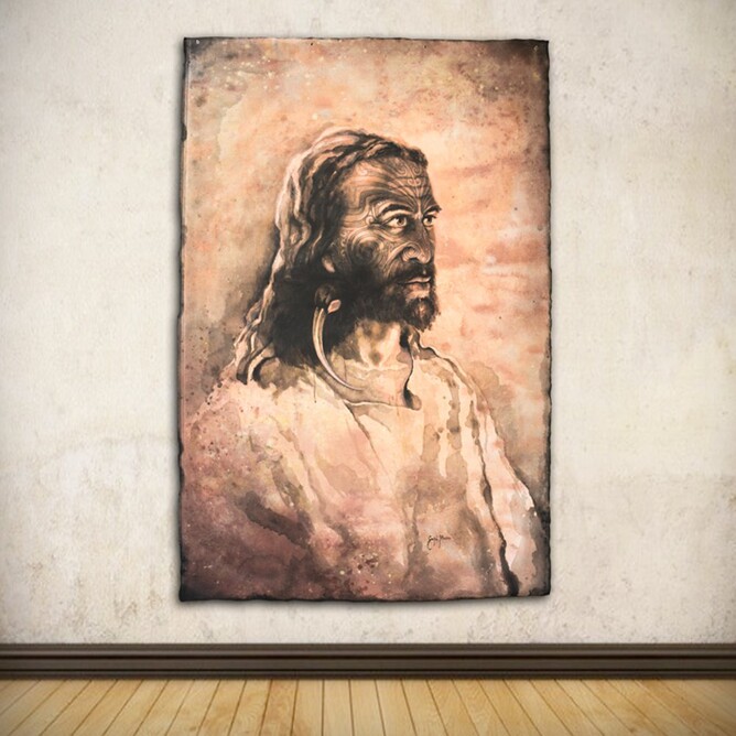 The Limited Edition Print of 'Maori Jesus' by Sofia Minson is an edition of 75 signed prints available on matte paper of museum archival quality called hahnemuhle photo rag 308gsm. Image size is 550mm high x 458mm wide surrounded by an unprinted white border. Shipping is FREE within NZ and $35 everywhere else (prices are NZD). Unframed print arrives sealed in protective tube or sleeve. Click here to contact us if you have questions.