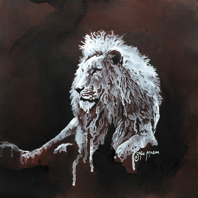 My pieces are all 300 x 300mm in size and very affordable at $300 unframed. Five of my six paintings celebrate the life force or what Maori term the 'mauri' of symbolic power animals or spirit animals, including the black panther, the white tiger, the lion (as seen in the picture below) and New Zealand's native kaka bird. The sixth artwork is a mandala, a circular pattern inspired by the Pacific ocean.