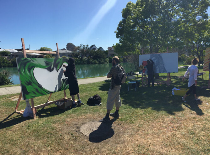 I was situated on the banks of the beautiful Maitai River with a group of talented, fun artists - Geoff Noble, Miriam Hansen, Smeagol, Richard Adams and the Kawai Raupapa Rauangi (Maori visual arts) students from Nelson Marlborough Institute of Technology.