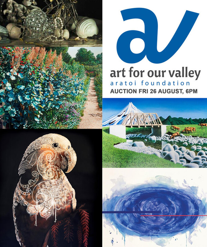 The Art For Our Valley auction is on this Friday 26 August at 6:00pm at Carterton Events Centre. If you can't be there in person don't fret! You can place an absentee bid - contact Margie Holmes on 0274 733 182 or margie.holmes@outlook.com for details.