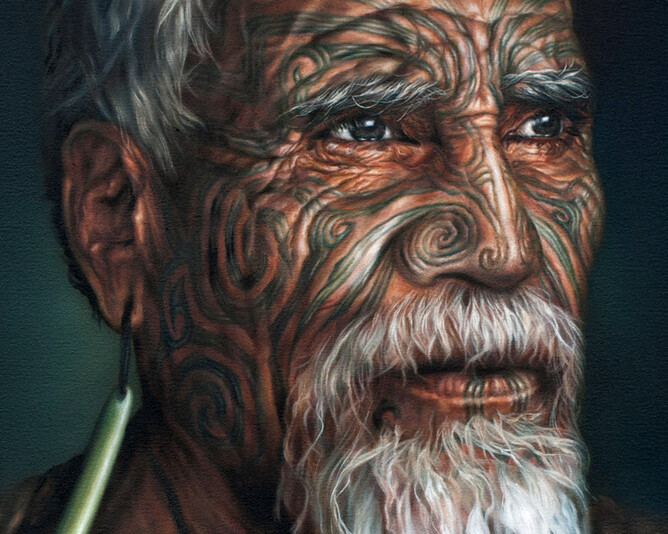 New Zealand Maori portrait and landscape oil painting