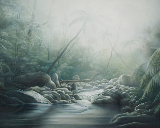 My aim was to bring that very old romanticism and depth into the world that I live in, which is often face paced, digital and overwhelming. There is a stillness that I feel in this work. It is very much in that eternal moment of "now," which is healing and where we can feel gratitude for abundance. One of the sources of abundance to thank in this case would be Taane, the progenitor of nature and of all living beings.