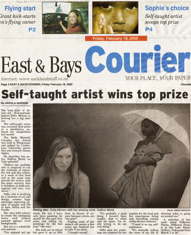 In 2005 at 20 years old I won 1st prize at the Molly Morpeth Canaday Art Awards held in Whakatane, New Zealand. The annual event is a prestigious competition.