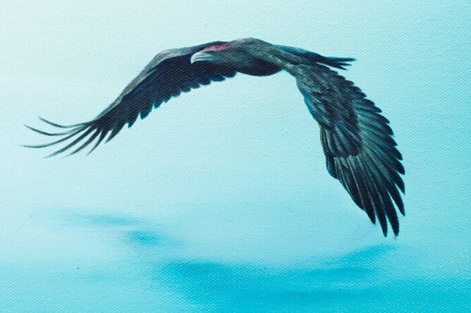 Sofia Minson's painting "Hu-u, the sound of the wings" featuring the now extinct Pouakai, Hokioi or Haast eagle, was one of the artworks chosen to explore this majestic bird.