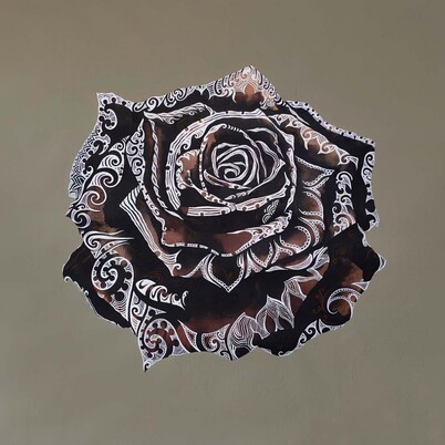 Diverse motifs surround the rose, blending Māori, Pacific, and Eastern designs, including mandalas symbolising unity and universal harmony. Here, the rose signifies not only Sofia's diverse heritage (Ngāti Porou Māori, English, Scottish, Irish, and Swedish) but also embodies the essence of Waiora: pure water, spiritual wellbeing, and deep healing.