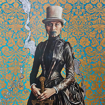 Sophia’s image powerfully expresses dignity, drawing inspiration from Sofia Minson's diverse personal heritage (Ngāti Porou Māori, English, Irish, Scottish, and Swedish). Her Victorian attire contrasts vividly with the moko kauae, representing a dialogue between tradition and individuality. The detailed symbolism of her sword conveys inner strength, rebirth, and a profound quest for self-awareness and wisdom.